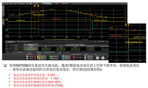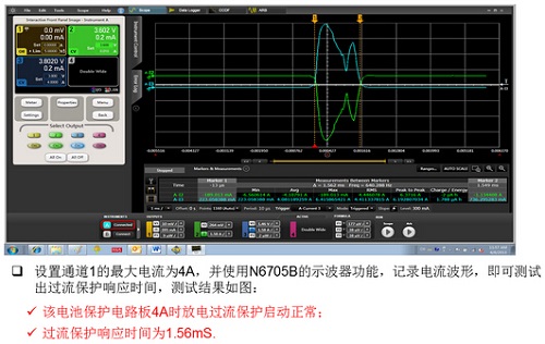 綜上所述,N6705B電源分析儀的部分模塊,如N6784A,N6752A具有雙象限能力,即可以作為電源輸出,也可以作為負(fù)載吸收電流,同時(shí)又具有電壓、電流示波器的功能。 使得復(fù)雜的電池保護(hù)板測(cè)試變得如此簡(jiǎn)單!