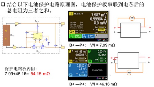 A. 使用萬(wàn)用表,分別測(cè)試B+>>P+, B->>P-(此時(shí)必須使用電源給保護(hù)電路板加電)的電阻,然后相加(業(yè)界目前主要采用該方法)。