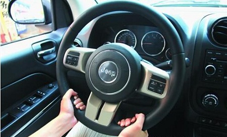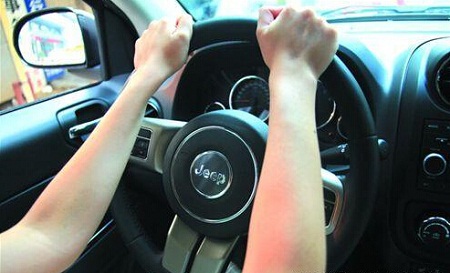 這種方法一般是那種拽不拉肌的老手男車主的老套路,同樣不是最科學(xué)的,這樣在安全氣囊彈出時(shí)也有可能打到手臂,特別是在大幅度打方向時(shí)。并且由于右手太靠下,往右打方向時(shí)右手難以使上力。