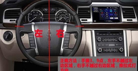 正確方法:手握方向盤3、9點(diǎn)鐘推拉式