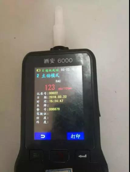經(jīng)呼氣測試,老人每呼氣測試值為123mg/100ml,民警依法對其處以罰款50元的處罰。
