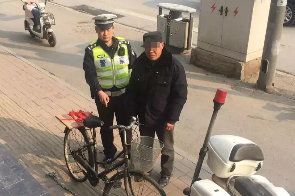 322日下午,濟南歷下交警大隊六中隊民警,在查處一違法駕駛人時,一老人騎著自行車停到民警身邊,對民警說:你看我這樣行不行,行不行?