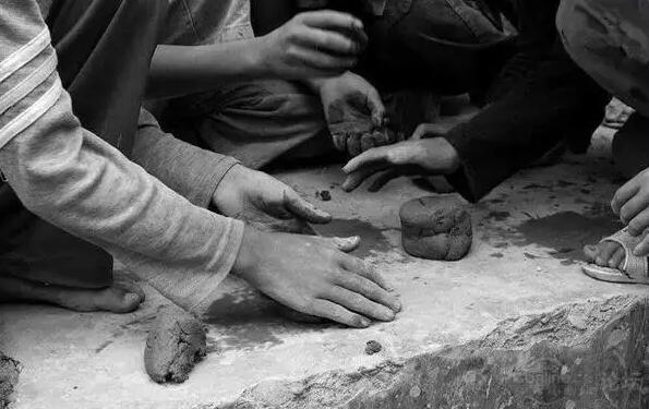 一片土地,各種姿勢趴在地上,最多的姿勢就是跪在地上,為了彈中別人的彈珠,不知道磨壞了多少條褲子的膝蓋。