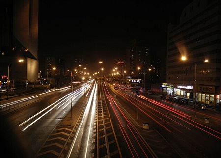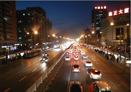 如果你往天橋上一站,用普通模式拍攝,就會(huì)得到這么一張照片。
