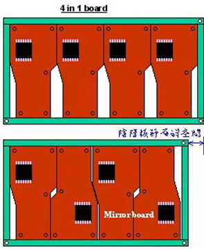 針對一些不是方正外形的電路板進(jìn)行陰陽板的拼板設(shè)計(jì),可以有機(jī)會多擠進(jìn)一~二塊電路板于同一片電路基板中,這樣就可以提高板材的使用效率,并達(dá)到節(jié)省成本的目的。