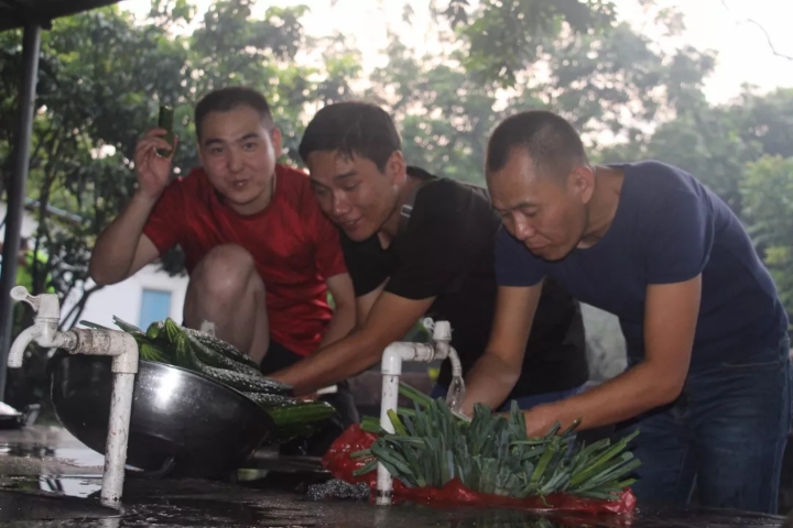 經(jīng)過兩個(gè)小時(shí)各位大廚和小幫廚的的齊心合作,美食出鍋,上桌,油燜大蝦、冬瓜燒清遠(yuǎn)雞、紅燒魚、回鍋肉、羊肉串、酸辣土豆絲、油燜茄子、蒜泥油麥菜……開吃咯!!