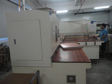 上圖是深圳PCB板廠分板的現(xiàn)場圖片,大張的板材通過這個機械,毫不費力的分開如豆腐狀,沒有任何毛刺,而且長寬都是自己在電腦里面設(shè)定的。設(shè)定好后將疊好的多塊PCB板材橫推入機械,短短十秒鐘裁出完美勻稱的PCB板。