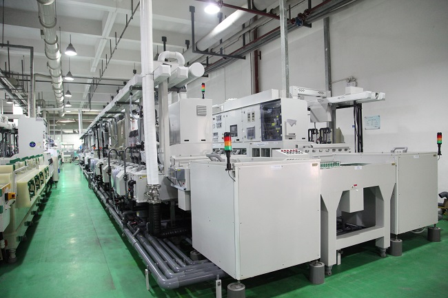 日蝕線!主要用來做薄型HDI線路板,板厚最薄可以做到0.075mm(不含銅),縱橫比可以做到8:1。當然1600㎡/天的產(chǎn)能也是不容小覷的!