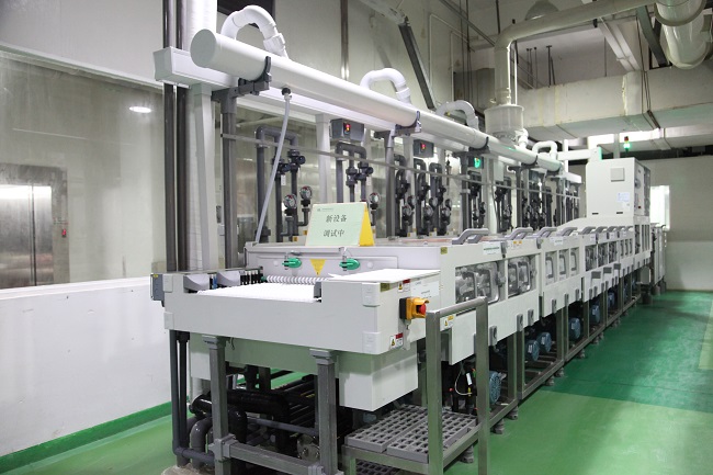 軟板的化學前處理線,也就是軟板的清洗線。正在新設備測試中……