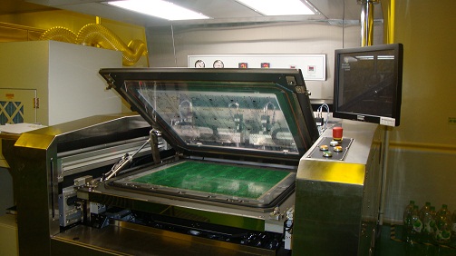 只見線路板廠的兄弟們把我平放在絲印機(jī)上,啟動(dòng)絲印機(jī)頂部的刷子,輕輕地,我被披上了一件鮮綠的衣服,頓時(shí)覺得光彩照人有木有?