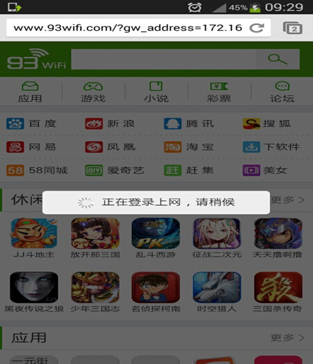 第三步.打開你滴瀏覽器,進入任何一個網(wǎng)頁自動跳入以下驗證界面,提示:登錄成功就可以正常上網(wǎng)了。(注:不做網(wǎng)頁認證無法使用93WiFi)
