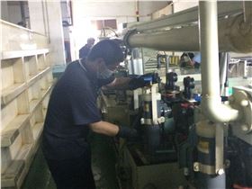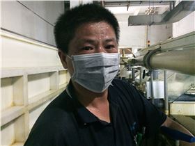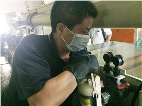 我在電鍍看到左賢達(dá)時(shí),他正在保養(yǎng)蝕刻線,汗水順著口罩不停地往下滴,全身早已濕透。因?yàn)檫^于專注手里的事情,跟他說話的時(shí)候,都是有一搭沒一搭的。老左說只要進(jìn)了車間,這衣服就濕漉漉地貼在身上沒干過,都是臟活累活,鉆到機(jī)器底下忙活半天也都是常事!