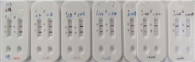 △從左至右為一位新型冠狀病毒感染者的血樣稀釋至1:512倍后仍可被本試劑盒檢出