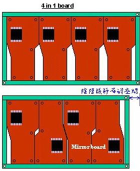 在電子組裝制造業(yè),一般我們稱呼的【陰陽板(Mirror Board)】有兩種類型,第一種類型是正反面顛倒的陰陽板(Different side mirror board),也有是一片印制電路板的第一面與另一片板子的第二面呈現(xiàn)在拼板的同一面上;另一種類型則是所有的拼板都同一面但左右顛倒的陰陽板(Same side mirror board),比如說pdpd的排版。